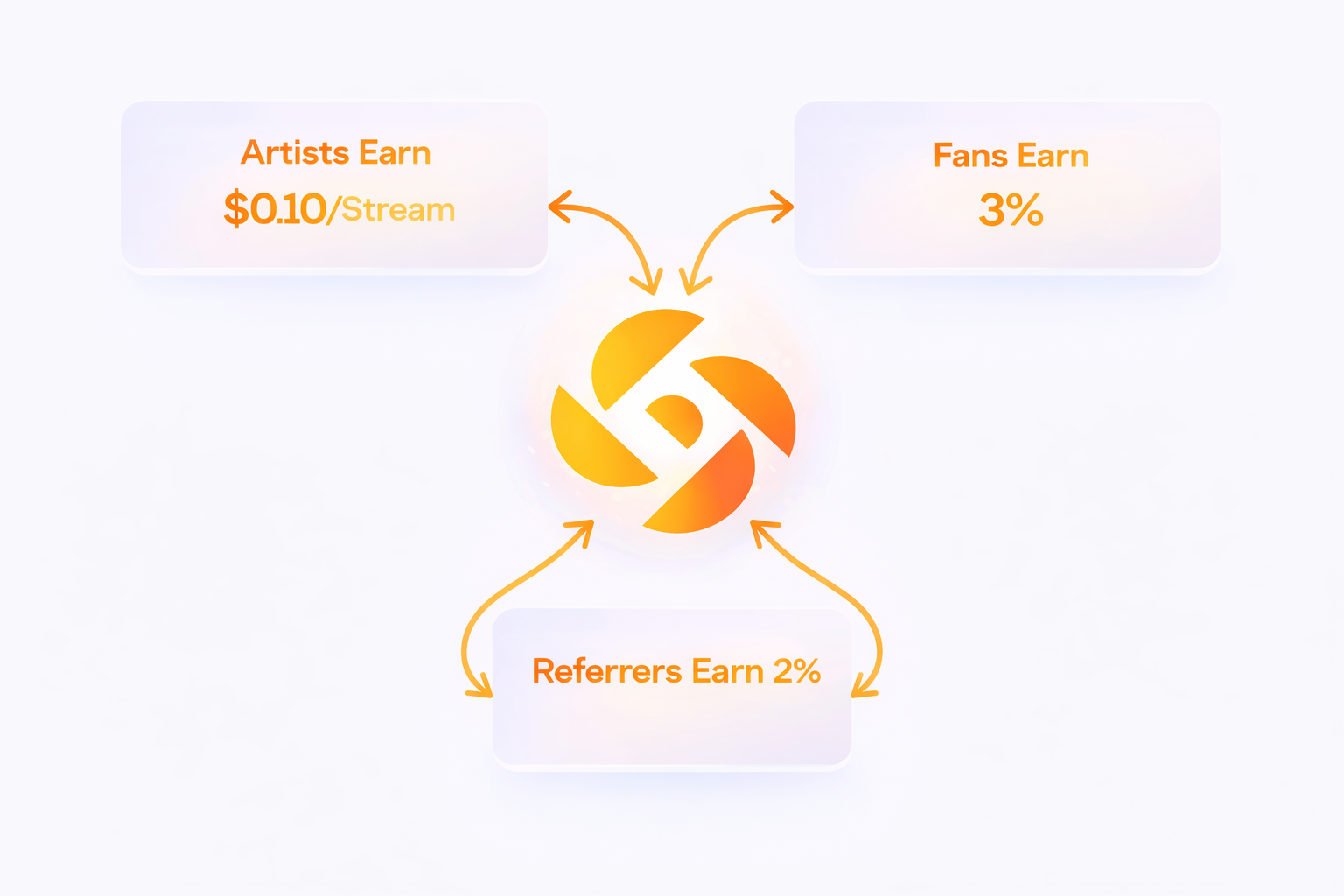 Artists can earn 10% more per stream than the industry average. Fans earn 3% of ad revenue. Referrers earn 2%. A truly fair ecosystem built for the people.